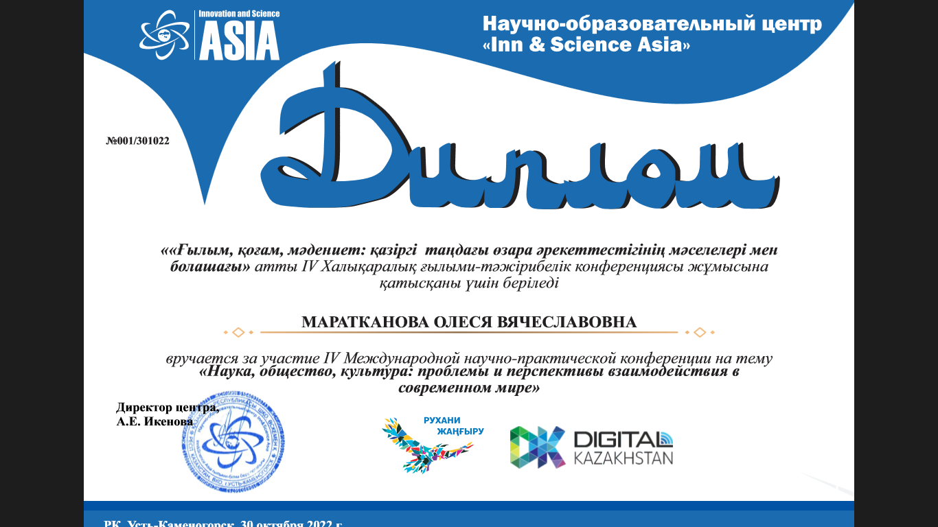 Преподаватель общеобразовательных и профессиональных модулей Маратканова Олеся Вячеславовна стала участницей четверной международной научно-практической конференции.